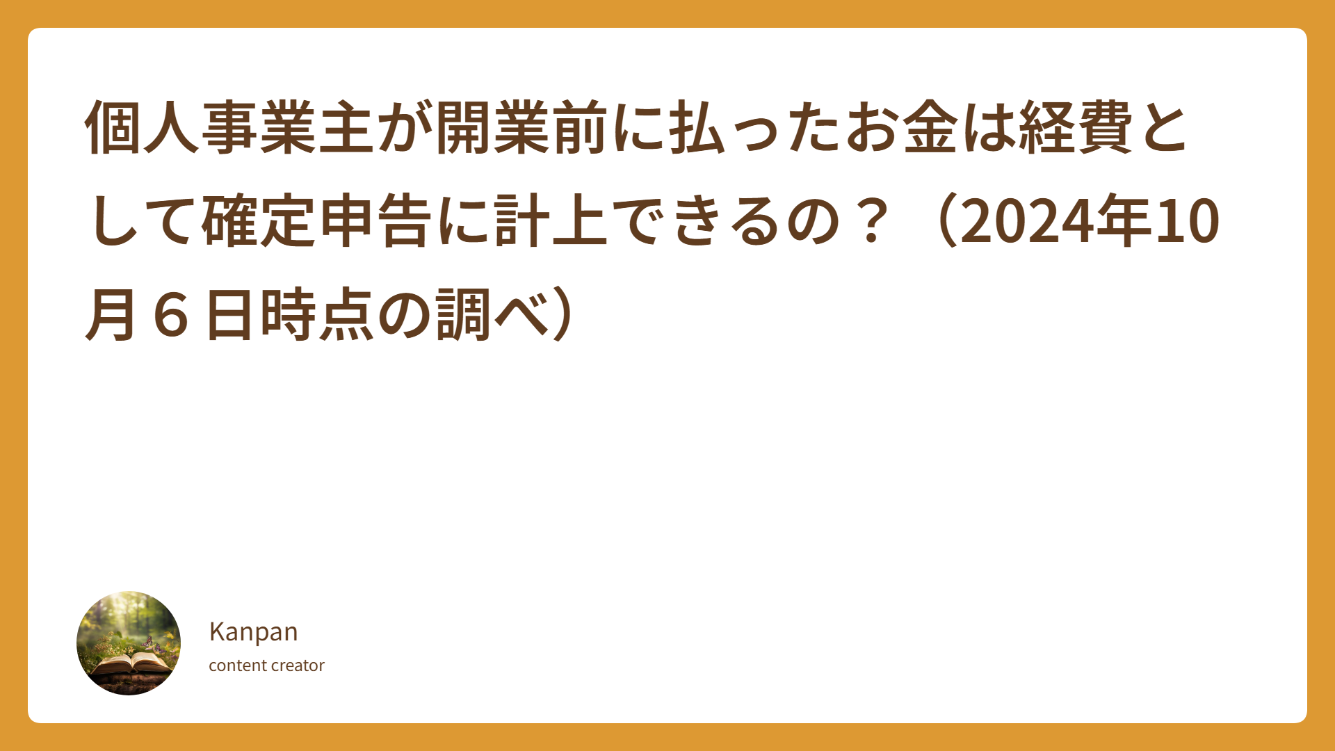 個人事業主が開業前に払ったお金は経費として確定申告に計上できるの?(2024年10月6日時点の調べ) 2024.10.06 ビジネス(HP制作 | 確定申告 | 副業) kanpanlab Kanpan Lab.